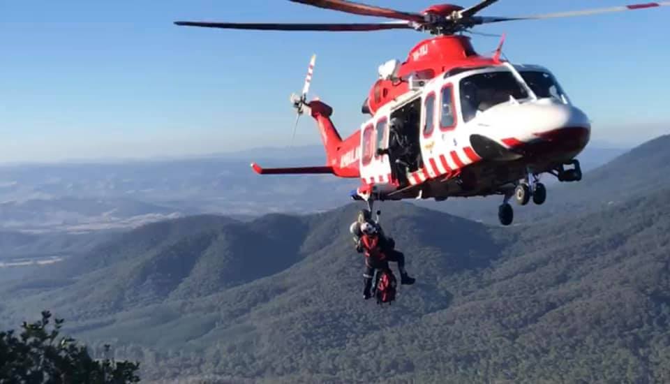 Marysville and Buxton CFA members assisted the CFA and FRV Rope Rescue Crews in staging equipment on Canyon Track. Fortunately, AV was able to stabilise the patient for a winch by HEMS1.