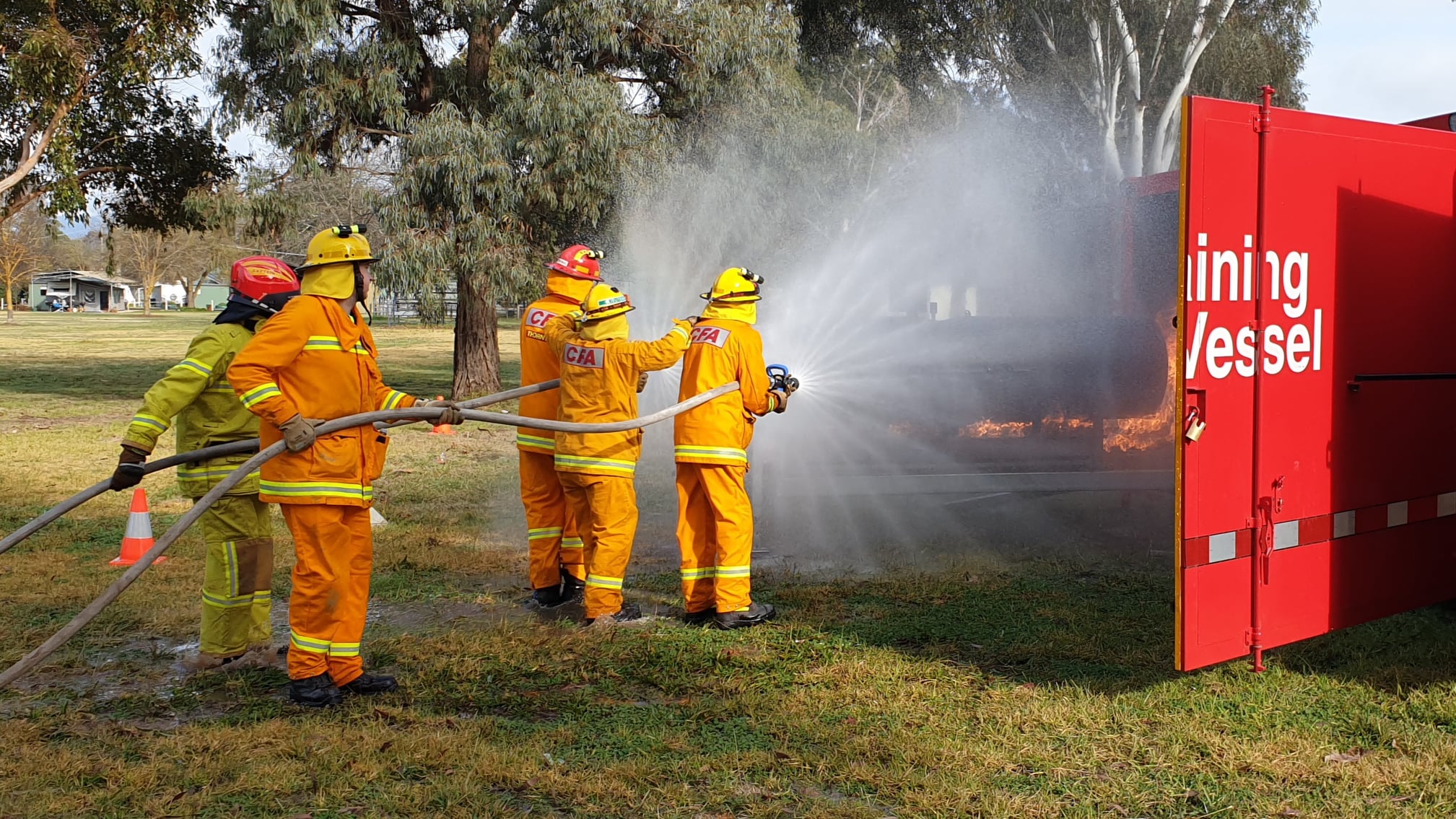 Two mobile training modules are currently located at Alexandra; one that simulates a car fire and another that allows members to practice a fire involving a LPG cylinder. The LPG cylinder prop is the newest addition to CFA’s range of mobile training modules.