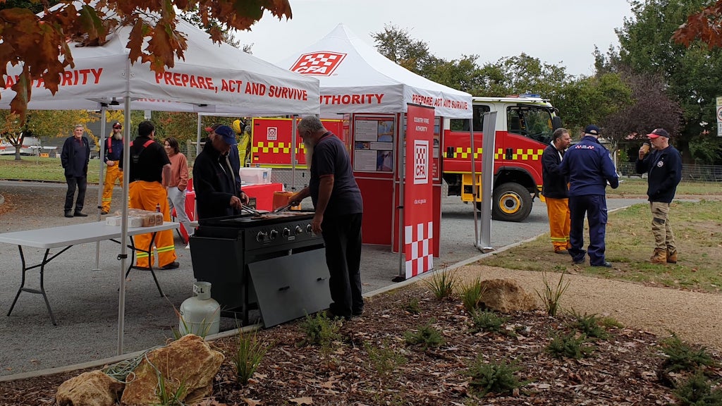 There is a free coffee van and sausage sizzle. Talk to us about fire safety in the home and grab a fire blanket to take home.