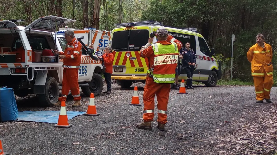 In the meantime, a Control Point was established at the carpark with Victoria Police assuming the role of Incident Controller. CFA, SES, and Ambulance Victoria units staged at the carpark while the ground crew made their way to the incident site. The air ambulance was responded and stoodby until weather conditions improved.