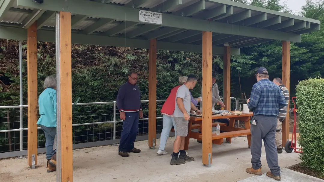 Through 2023 and 2024, the old flagpole was replaced with three modern flagpoles, a gazebo area was built inclusive of a table and seats fabricated by the Marysville Mens Shed, along with additional concrete works to improve operations around the standpipe so hoses can be tested and washed easier. In addition, improvements were made to the gardens to reduce the maintenance impost on our members and removing grassed areas.
